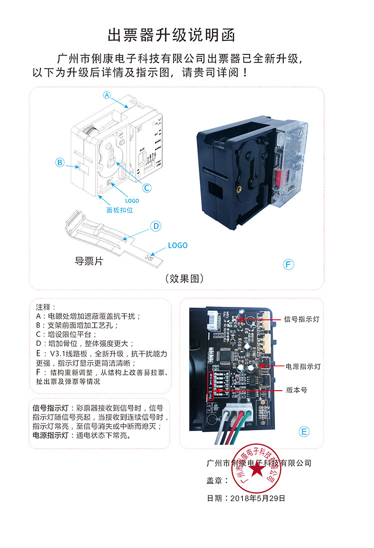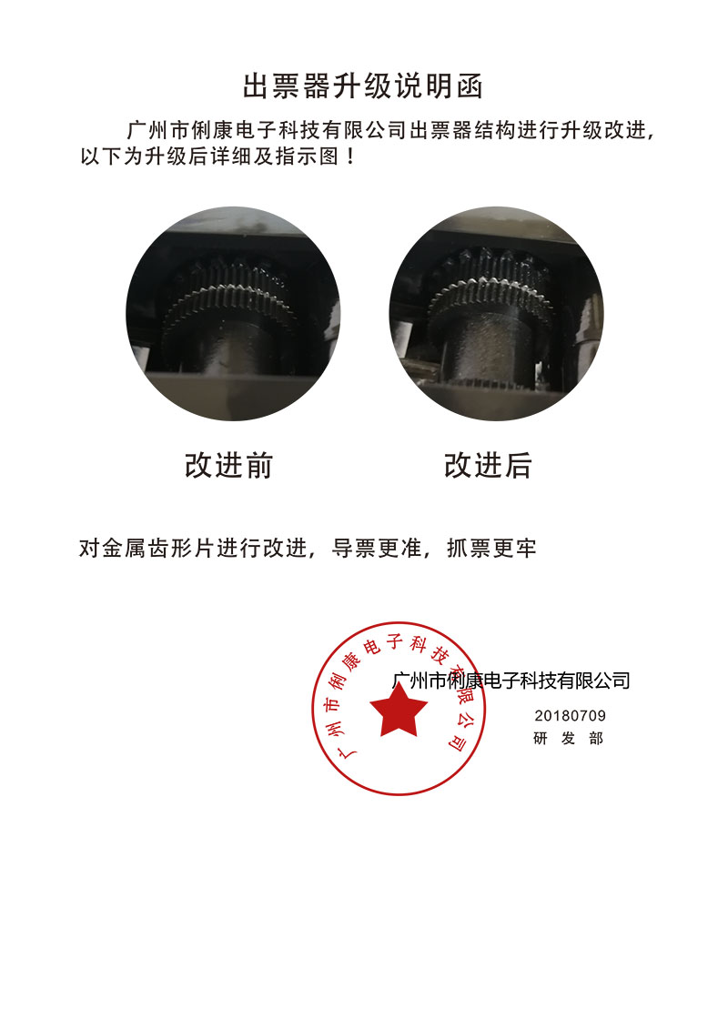 產(chǎn)品市場在不斷變化,公司技術(shù)研發(fā)也需不斷創(chuàng)新, 我司秉承沒有最好,只有更好的態(tài)度, 研發(fā)部門緊跟市場變化,陸續(xù)升級,進(jìn)一步提升產(chǎn)品結(jié)構(gòu)品質(zhì),LK006系列出票器升級說明如下: